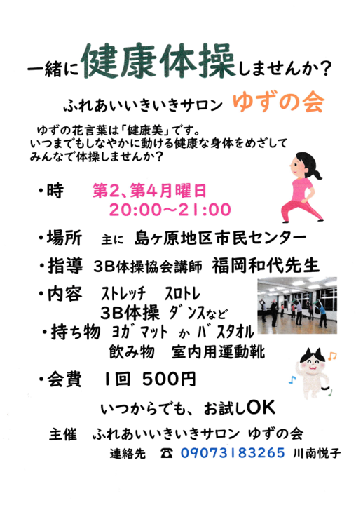 - 主催:ふれあいいきいきサロン ゆずの会